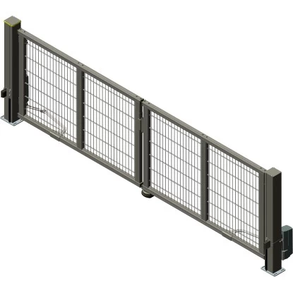 Das hochwertige Dpppeltor ist aus kunststoffbeschichtetem Aluminium in Anthrazit (RAL 7016) gefertigt und dadurch besonders langlebig sowie pflegeleicht. Das Tor ist gefüllt mit Doppelstab-Gittermatten mit einer Abmessung von 6/5/6 mm. Es funktioniert voll automatisch und ist somit komfortabel, aber auch sicher.
