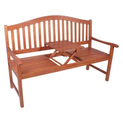 Die Bank Phuket ist aus FSC-zertifiziertem Eukalyptusholz gefertigt und verfügt über einen hochklappbaren Tisch in der Sitzfläche, der bei Bedarf aufgerichtet werden kann. So können Sie es sich auf dieser Bank bequem machen und den Tisch als Abstellfläche nutzen. Wird der Tisch einmal nicht benötigt, kann er heruntergeklappt werden, sodass bis zu 3 Personen Platz auf der Bank finden.