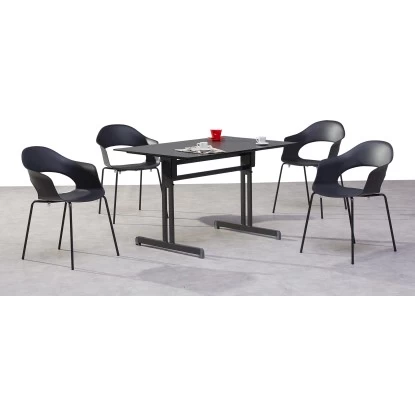 Der Best Stapelsessel Luna mit stabilem Stahlgestell ist verzinkt und in der Farbe Anthrazit pulverbeschichtet, was ihn absolut witterungsbeständig macht. Die ergonomische Sitzschale ist besonders robust und wetterfest und für den Dauereinsatz im Freien bestens geeignet.