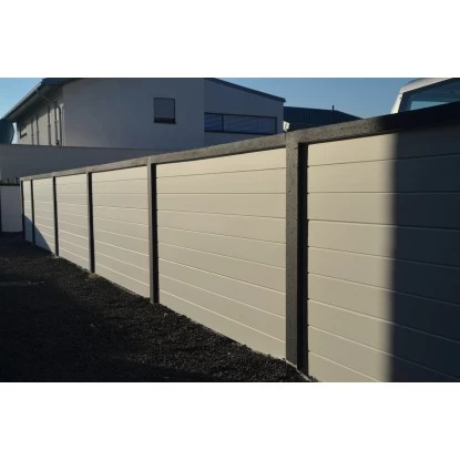 Die Standard Rechteck – Oberlatte besteht aus C30/37 Beton. Sie ist betongrau und für einen einseitig-strukturierten Zaun geeignet.