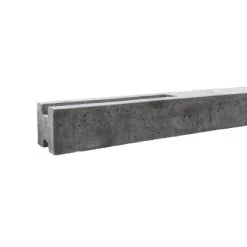 Der Standard Zwischenpfosten besteht aus C30/37 Beton. Er ist betongrau und für einen einseitig-strukturierten Zaun mit einer Aufbauhöhe von 39 cm geeignet.