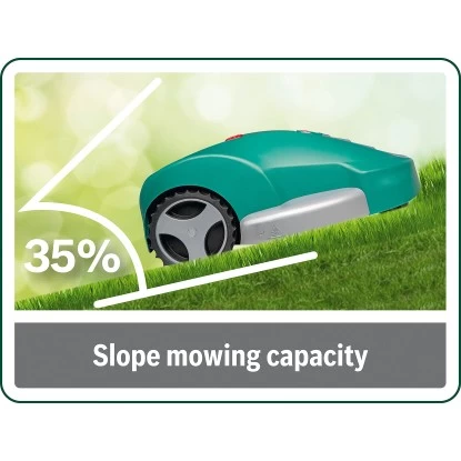 Der Indego arbeitet unter den meisten Wetterbedingungen und bewältigt Steigungen bis 35 %. Er bietet sämtliche Sicherheitsfunktionen und ist mittels PIN-Abfrage und Alarmanlage vor unerwünschtem Fremdzugriff geschützt.