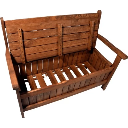 Die Dobar Gartenbank aus braun geöltem Massivholz ist nicht nur ein echter Blickfang in Ihrem Garten, sondern bietet auch einen praktischen Stauraum für Gartenutensilien. Die klassische Gartenbank bietet eine komfortable Sitzmöglichkeit für bis zu zwei Personen.