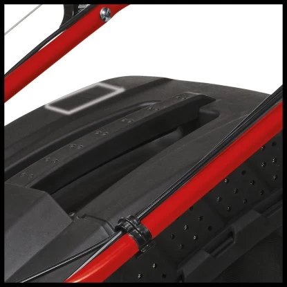 Der optionale Startseilzug ist gut erreichbar am ergonomischen Führungsholm angebracht, der dank Softgrip und dreistufiger Höhenverstellung viel Bedienkomfort bietet und sich zudem für die platzsparende Unterbringung einklappen lässt. Der abschaltbare Hinterradantrieb ermöglicht kontinuierlichen Vorschub und erleichtert zudem das Mähen auf großen Flächen.