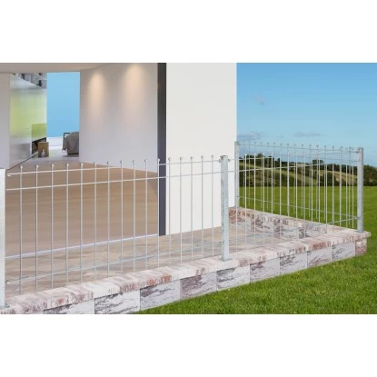 Zeitloses Design mit eleganten Kugelspitzen: Der Eleo Zaun Como feuerverzinkt ist ein Klassiker, der mit einer schlichten und ansprechenden Optik punktet. Hingucker sind die kugelförmigen Spitzen. Der Metall-Zaun Como überzeugt mit hoher Qualität – von Hand geschmiedet aus stabilem Eisen trotzt er Witterungen problemlos über Jahre hinweg.