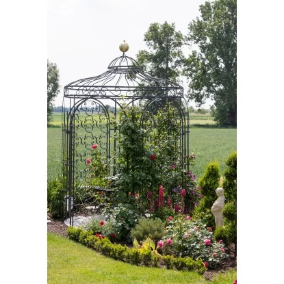 Das Rankgitter Rosa fügt sich passgenau in die Bögen des Eleo Pavillons Siena. Das Gitter wird schnell und einfach eingehängt. Die korrekte Installation des Rankgitters ist in der Montageanleitung Ihres Pavillons erläutert.