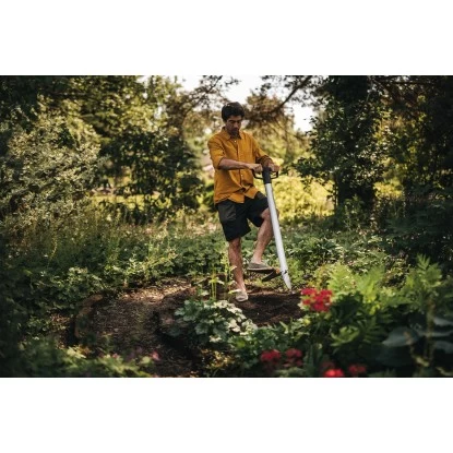 Der Fiskars Blumenzwiebel-Pflanzer Xact mit Stiel ist eine intelligentere, ergonomischere Art und Weise, Zwiebeln und kleine Setzlinge zu pflanzen, ohne dass man sich hinknien und bücken muss. Mit diesem einzigen Werkzeug können Sie mit wenigen Handgriffen ein Loch graben, Ihre Zwiebel platzieren und sie mit Erde bedecken.