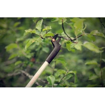 Die Fiskars Busch- und Strauchschere Light UP69 verfügt über einen schwenkbaren Griff für ein schonendes und einhändiges Schneiden aus, sowie über einen einstellbaren Öffnungswinkel für den Schneidkopf. Des Weiteren besitzt sie einen langen und leichten Aluminiumstiel mit Kunststoff-Überzug für eine optimale Arbeitshöhe in rückenschonder Körperhaltung und gute Griffigkeit.