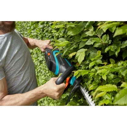 Die Heckenschere kann mit allen 40 V System-Akkus aus der Gardena HeartBeat Serie betrieben werden und ermöglicht so ein hohes Maß an Flexibilität. Die maximale Ausgangspannung ohne Last beträgt 40 V, die Nominalspannung liegt bei 36 V.