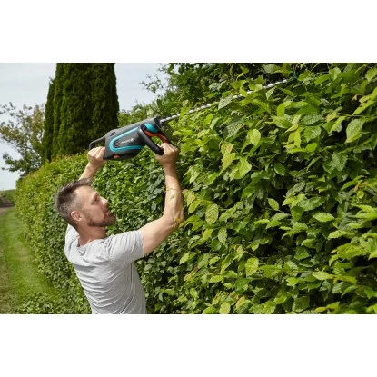Der umlaufende ErgoLine Handgriff mit integrierter Auslösetaste sorgt dafür, dass die Heckenschere jederzeit komfortabel und sicher in der Hand liegt und ermöglicht so ein ermüdungsfreies und kontrolliertes Arbeiten. Das geringe Gewicht von nur 3,7 kg und der große Arbeitsradius ermöglichen zudem eine besonders rückenfreundliche Verwendung.