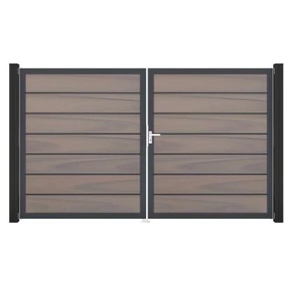 Alle Bestandteile des Tors sind aus hochwertigen Materialien gefertigt, die Wind und Wetter trotzen und garantiert rostfrei sind. Das Tor ist 2-flügelig und wird inklusive Beschlagset geliefert. Das BPC-Profil und der Aluminium-Rahmen machen das Tor besonders witterungsbeständig und langlebig. Zudem ist es pflegeleicht und einfach zu reinigen.
