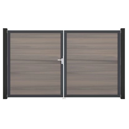 Alle Bestandteile des Tors sind aus hochwertigen Materialien gefertigt, die Wind und Wetter trotzen und garantiert rostfrei sind. Das Tor ist 2-flügelig und wird inklusive Beschlagset geliefert. Das BPC-Profil und der Aluminium-Rahmen machen das Tor besonders witterungsbeständig und langlebig. Zudem ist es pflegeleicht und einfach zu reinigen.