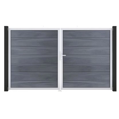 Alle Bestandteile des Tors sind aus hochwertigen Materialien gefertigt, die Wind und Wetter trotzen und garantiert rostfrei sind. Das Tor ist 2-flügelig und wird inklusive Beschlagset geliefert. Das BPC-Profil und der Aluminium-Rahmen machen das Tor besonders witterungsbeständig und langlebig. Zudem ist es pflegeleicht und einfach zu reinigen.