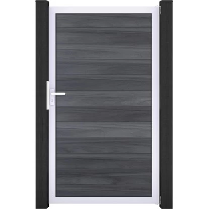 Dieses Tor mit einem Flügel aus BPC und einem Rahmen aus hochwertigem Aluminium bietet langfristig witterungsbeständigen Schutz. Sämtliches Zubehör, wie Torbänder, Schließblech, Schloss und Griff sind im Lieferumfang enthalten und aus rostfreiem Material gefertigt. Da die DIN-Richtung durch wenige simple Handgriffe angepasst werden kann, ist das Tor universell einsetzbar.