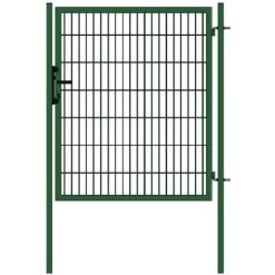 Die H+S Tür Uli MW 200 mm x 50 mm ist eine elgante Tür und optisch passend zu einem Doppelstabmattenzaun. Die Türanlage hat einen Formrohrahmen 40 mm x 40 mm und eine Formrohrsäulengarnitur 60 mm x 40 mm mit Überlänge zum Betonieren. Die Gitterfüllung hat eine Maschenweite von 200 mm x 50 mm und eine Drahtstärke von 5 mm. Sie ist rechts und links verwendbar. Ein Rohrrahmenschloss mit Zylinder und die Drückergarnitur sind inkludiert.
