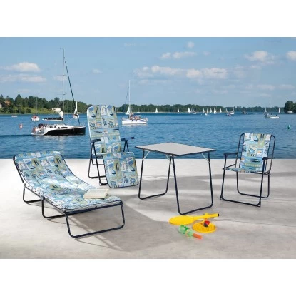 Der Klappsessel Chiemsee in Blau ist klein zusammenklappbar, aber groß im Komfort. Er ist der ideale Begleiter für Reise und Camping und bietet angenehmen Komfort, bei Bedarf macht er sich ganz klein. Der hochwertig verarbeitete Klappsessel besitzt ein stabiles Stahlrohrgestell mit wetterfester Beschichtung und eine unempfindliche, komfortable, 2 cm starke Polsterung.