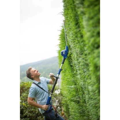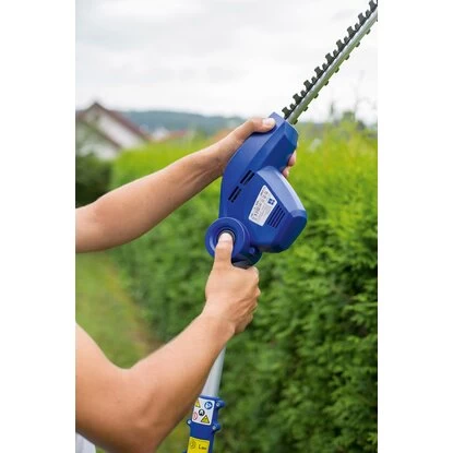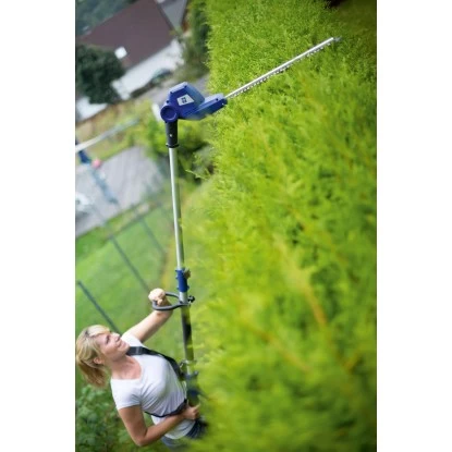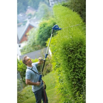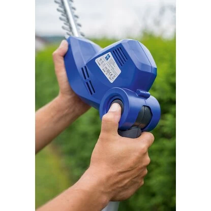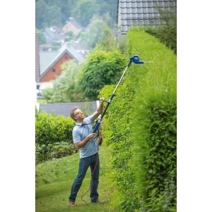 Die LUX-TOOLS Elektro-Teleskop-Heckenschere E-HS-400/42 T mit 400 W ist ideal geeignet zum bequemen Schneiden von hohen Hecken und Strauchgewächsen auch ohne Leiter. Mit der Teleskop-Höhenverstellung von 180 cm bis 235 cm können Sie Arbeitshöhen bis 4 m erreichen. Für den Höhenbegrenzungsschnitt ist die Messereinheit abwinkelbar und hat eine 42 cm Schnittlänge. Die lasergeschnittenen Präzisionsmesser sorgen für einen sauberen Schnitt. Die gegenläufigen, beidseitig schneidenden Messer haben eine maximale Schnittstärke von 18 mm. Der Anschlagschutz schützt Messer und Mauerwerk. Der ergonomisch geformte Griff unterstützt auch ein längeres Arbeiten. Mit 3,6 kg ist die Teleskop-Heckenschere zudem sehr leicht.