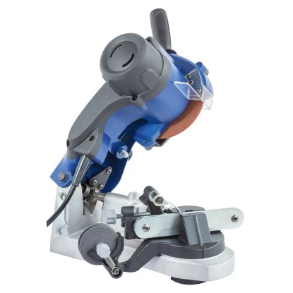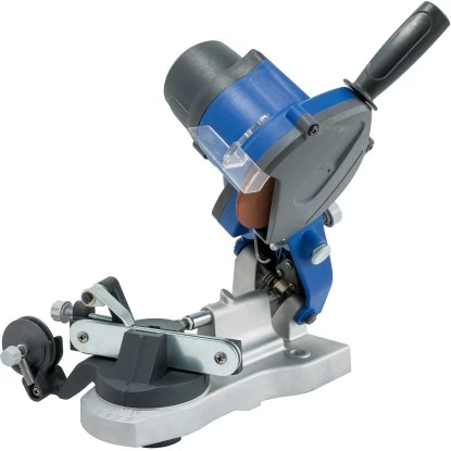Das LUX-TOOLS Sägekettenschärfgerät KSS-85 unterstützt Sie dabei, die Ketten Ihrer Kettensäge optimal zu schärfen. Der Vorteil dieses Gerätes liegt darin, dass die Bauweise so gestaltet ist, dass Sie die Kette jeweils ein Kettenglied weiter ziehen können und dieses immer in der optimalen Bearbeitungsposition einrastet. Das erspart ein zusätzliches Justieren und das Schärfergebnis ist entsprechend genau. Natürlich besitzt das Gerät eine drehbare Spannvorrichtung, eine Tiefenbegrenzung und einen schwenkbaren Schleifkopf.