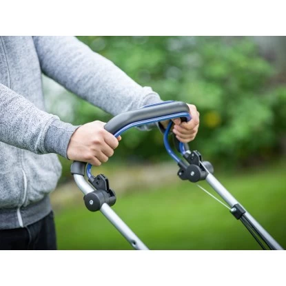 Um Kraft und Energie zu sparen, besitzt der Benzin-Rasenmäher einen praktischen Radantrieb. Hierbei erfolgt die Vorwärtsbewegung mit Motorkraft. Nach Belieben kann die zentrale Schnitthöhenverstellung in sieben verschiedenen Positionen von 25 mm bis 75 mm verstellt werden.