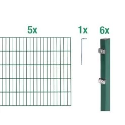 5 x Doppelstabamtte, verzinkt und grün kunststoffbeschichtet RAL 6005