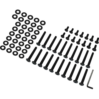 Mit dem hochwertigen Montageset lässt sich das 4-teilige Sofa-Lounge-Set Olary aufbauen. Es besteht insgesamt aus 68 Schrauben sowie Unterlegscheiben und verbindet die Sitzflächen und Tischplatte mit den Gestellen. Auf diese Weise wird eine sichere Nutzung der Gartenmöbel ermöglicht. Für die einfache Montage liegt ein passender Inbusschlüssel bei, der zum Anziehen der Schrauben dient. Gefertigt ist das Schraubenset aus rostfreiem Stahl.