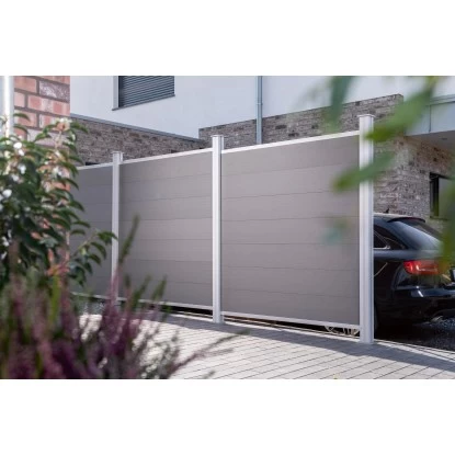 Die Osmo Sichtblende Multi-Fence Elegance B in der Farbe Hellgrau greift den Minimalismus-Trend der aktuellen Baukultur mit großen Flächen, klare Linien und kühle Farben auf.