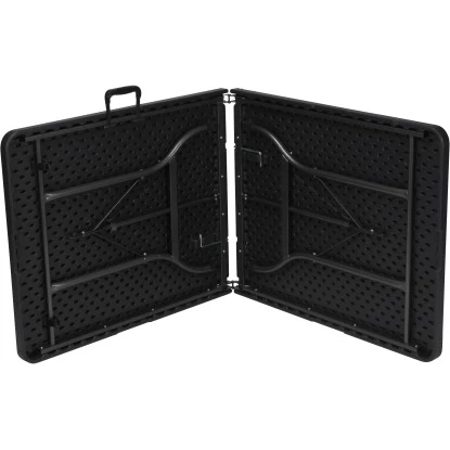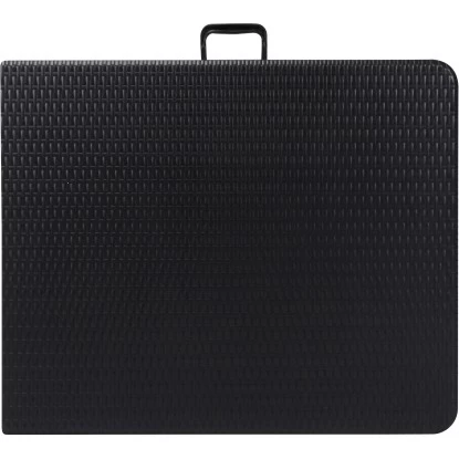 Der schwarze Perel Klapptisch in Polyrattan-Optik eignet sich ideal für den Innen- und Außenbereich. Die Tischplatte aus Polyethylen ist unempfindlich gegen Stöße, Kratzer, Flecken und Abrieb. Das Stahlgestell zeichnet sich durch eine hohe Widerstandsfähigkeit gegen Wettereinflüsse, sowie durch Formstabilität aus.