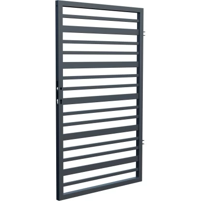 Das Polargos Gartentor Rubin mit Zubehör besteht aus horizontalen Streben und einem Rahmen. Es eignet sich dank seiner geraden Linienführung sowohl für klassische als auch für moderne Gebäude. Das Paket beinhaltet Klinken, 2 x Scharniere, ein Schloss und Montagezubehör. Sie müssen 1 x Pfosten mit Nietmuttern und 1 x Anschlagpfosten ohne Bohrungen oder 2 x Maueranker kaufen.