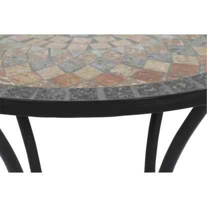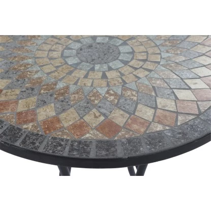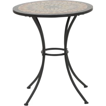 Holen sie sich den Landhaus-Charme in den Garten. Der Siena Garden Bistrotisch Prato erschafft mit seiner Mosaik-Optik ein natürliches und wunderschönes Milieu im klassischen Landhaus-Stil. Das Gestell ist aus besonders robustem Stahl, welcher zudem pulverbeschichtet und dadurch pflegeleicht ist. Wie für die Serie üblich, bietet er verschiedene Sitz- und Abstellmöglichkeiten und überzeugt daher mit optimaler Funktionalität. Der Prato Bistrotisch mit seiner Tischplattenoberfläche in Mosaik-Optik wird ganz bestimmt zur Zierde Ihrer grünen Gartenwelt.