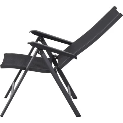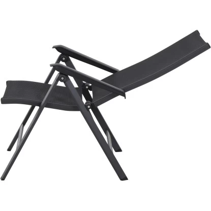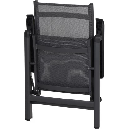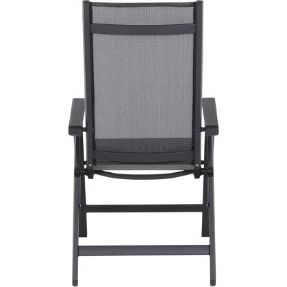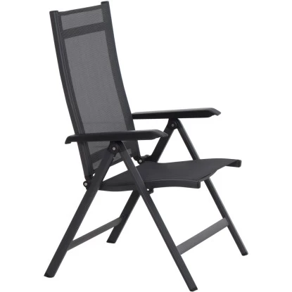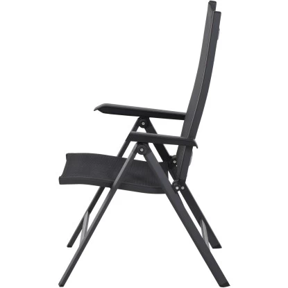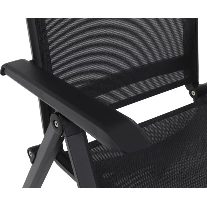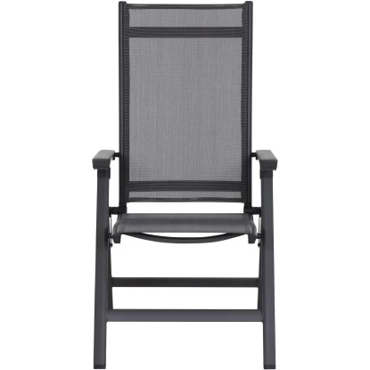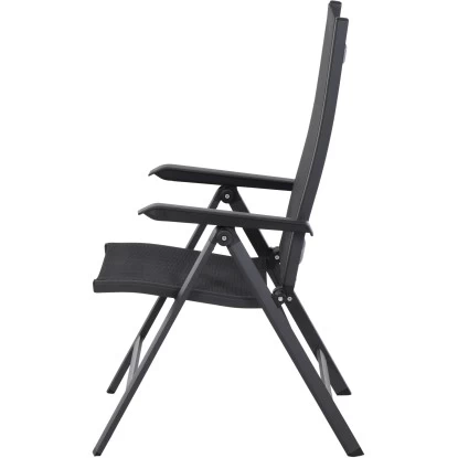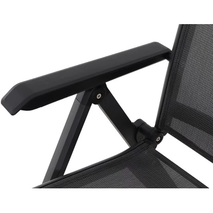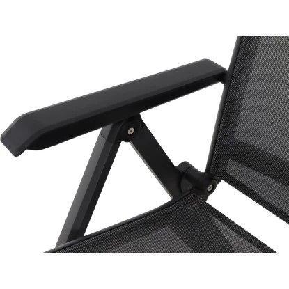 Der Siena Garden Klappsessel Tesoro besteht aus einem pulverbeschichteten Aluminiumgestell in Anthrazit Matt. Der formstabile Ranotex-Bezug in Schwarz-Silber sorgt für bequemes Sitzen, sodass Auflagen nicht notwendig sind. Abgerundet wird der Gesamteindruck durch Armlehnen aus Kunststoff in Schwarz. Die hohe Qualität in Verarbeitung und Material sichern die Langlebigkeit. Hierdurch haben Sie langfristig Freude an diesem Sessel. Da die Rückenlehne 5-fach verstellbar ist, können Sie sich in dem für Sie perfekten Winkel zurücklehnen und entspannen. Der Klappsessel ist wetterfest, pflegeleicht und kann zusammengeklappt platzsparend verstaut werden.