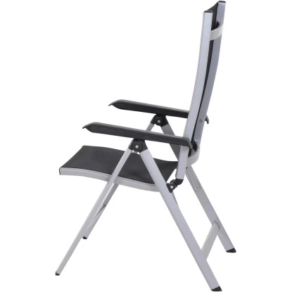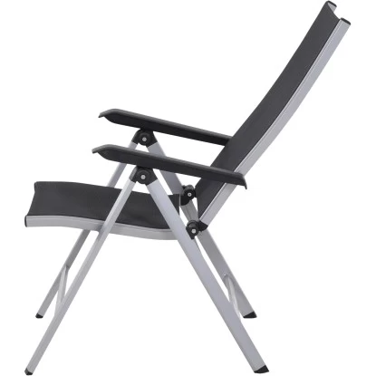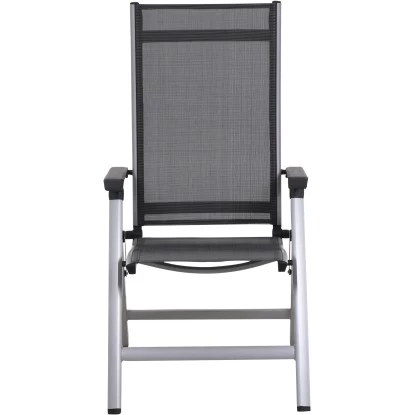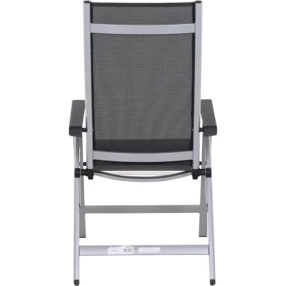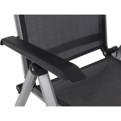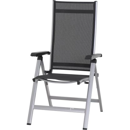 Der Siena Garden Klappsessel Tesoro besteht aus einem pulverbeschichteten Aluminiumgestell in Silber. Der formstabile Ranotex-Bezug in Grau sorgt für bequemes Sitzen, sodass Auflagen nicht notwendig sind. Abgerundet wird der Gesamteindruck durch Armlehnen aus Kunststoff in Schwarz. Die hohe Qualität in Verarbeitung und Material sichern die Langlebigkeit. Hierdurch haben Sie langfristig Freude an diesem Sessel. Da die Rückenlehne 5-fach verstellbar ist, können Sie sich in dem für Sie perfekten Winkel zurücklehnen und entspannen. Der Klappsessel ist wetterfest, pflegeleicht und kann zusammengeklappt platzsparend verstaut werden.