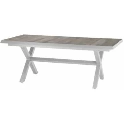 Der Siena Garden Sincro Ausziehtisch in den Maßen 200-260 cm x 100 cm x 77 cm in Weiß-Grau ist ein modernes Möbelstück, das zugleich praktisch und elegant ist. Mit einem einfachen Handgriff kann der Tisch um 60 cm vergrößert werden und bietet so Platz für bis zu 10 Personen. Die ausziehbare Tischplatte ist im eingefahrenen Zustand nicht sichtbar und verleiht dem Tisch ein besonderes Aussehen.