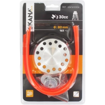 Der Fadenkopf von Skana bietet eine ökologische und umweltfreundliche Lösung zur Unkrautbeseitigung. Ohne den Einsatz von Chemikalien werden Mikroorganismen nicht zerstört. Der Fadenkopf besteht aus hochwertigem Aluminium und lässt sich einfach montieren. Einmal angebracht, können die Fäden ohne Demontage ausgetauscht werden. Der Fadenkopf eignet sich optimal zur Beseitigung von Moos und Unkraut auf gepflasterten Flächen und Bordsteinkanten, ohne den Untergrund zu beschädigen oder zu zerkratzen. Passend für die meisten Motorsensen mit Messeraufnahme