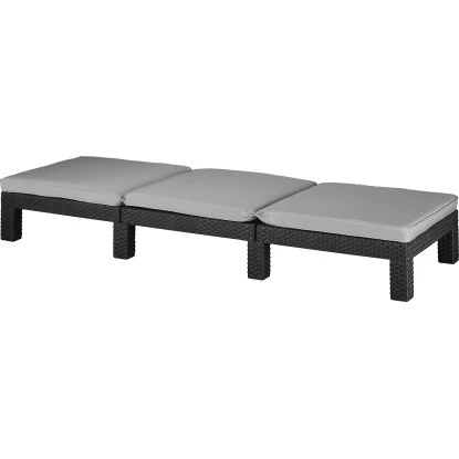 Die Sonnenliege Daytona besteht aus hochwertigem Kunststoff, ist sehr stabil und UV- und wetterbeständig. Die Rückenlehne der Sonnenliege kann in vier Positionen verstellt werden, von ganz flach, um ein Sonnenbad zu genießen, bis zu einer angenehmen aufrechten Position, um entspannt ein Buch zu lesen. Passen Sie die Liege Daytona ganz einfach an Ihre Stimmung an. Die mitgelieferte, angenehme Auflage bietet einen bequemen und hohen Liegekomfort. Dank eines Riemens am Kopfteil bleibt die Auflage an ihrem Platz.