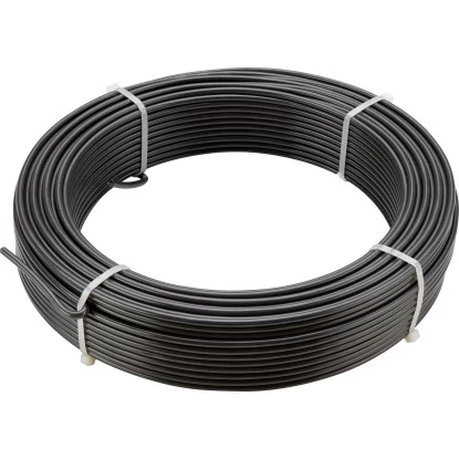 Gefertigt ist der hochwertige Draht aus verzinktem Stahl, das mit einem schützenden Kunststoffmantel in der Farbe Anthrazit ausgerüstet ist. Diese Ausführung bewirkt eine hohe Witterungsbeständigkeit und eine lange Lebensdauer. Der Spanndraht ist lose aufgewickelt und besitzt eine Länge von 55 m. Durch seine Stärke von 3,8 mm stellt er Ihnen eine hohe Zugfestigkeit zur Verfügung.