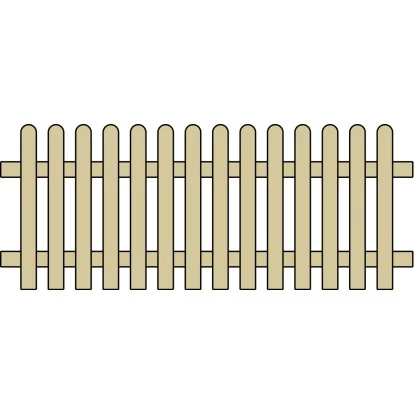 Das Zaunfeld besteht aus vierzehn 25 mm starken Latten mit einer Breite von 75 mm sowie zwei 30 mm starken Riegeln mit 75 mm Breite. Die Riegel verlaufen horizontal auf der Rückseite des Zauns und stabilisieren die Latten so optimal. Die Befestigung in Form von rostfreien Rillennägeln ist dabei so angebracht, dass sie an der Vorderseite nicht zu sehen ist. Zur einfachen Montage wird die Verwendung von Vierkant-Zaunpfählen (separat erhältlich) empfohlen.