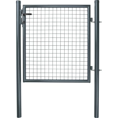 Die anthrazite Wellengitter-Einzeltür kann in einen Gartenzaun integriert werden und dient beispielsweise der Grundstücksabgrenzung. Sie enthält ein leichtgängiges, auswechselbares Rohrrahmenschloss, passende Türgriffe sowie drei Schlüssel. Zudem ist die Tür witterungsbeständig, da sie aus feuerverzinktem und pulverbeschichtetem Stahl gefertigt wurde.
